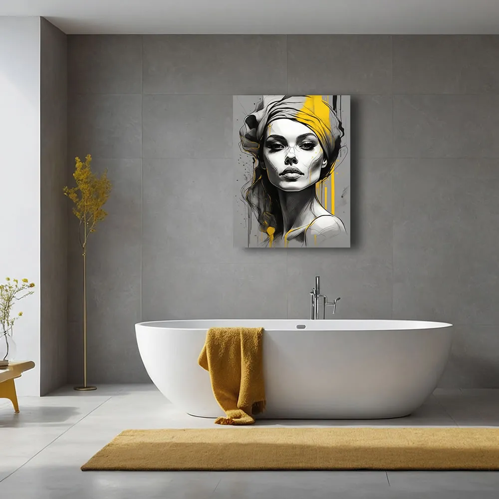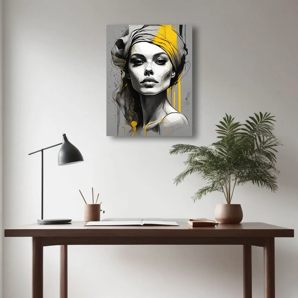 This artwork stands out with its vivid color palette, utilising shades of orange and pink to create an eye-catching contrast that highlights the subject’s intricate details and expressive features. The slightly moody expression on the lady’s face adds a layer of intrigue and emotion, inviting viewers to interpret her story and the emotions behind her gaze. The digital technique used to create this piece ensures precision and vibrancy, making each brushstroke and detail come to life on the satin canvas.