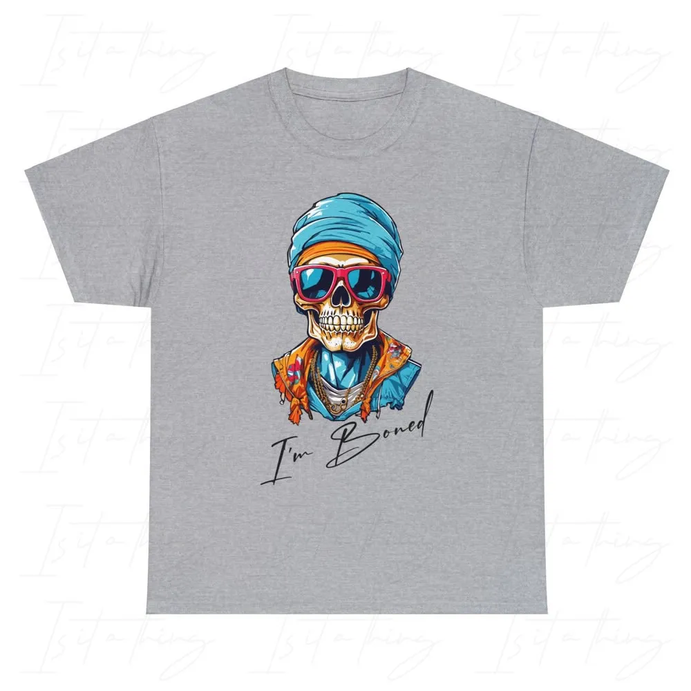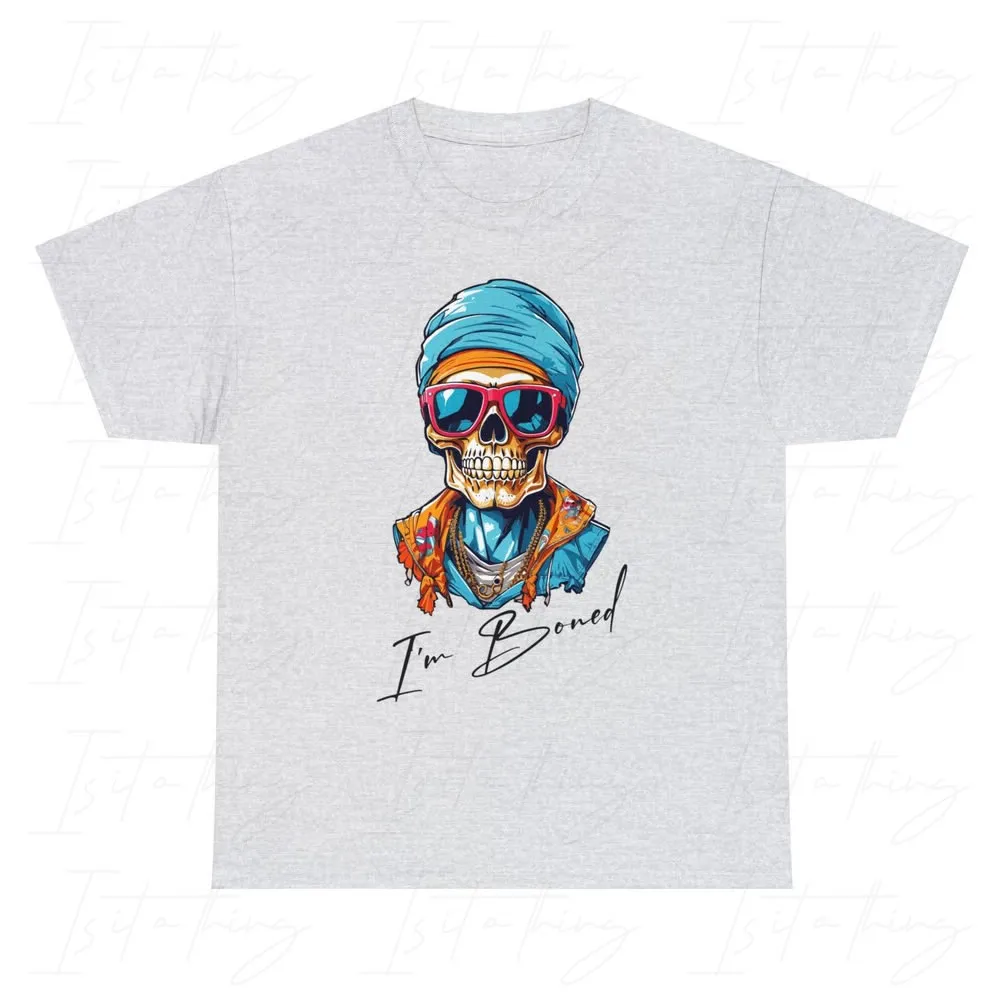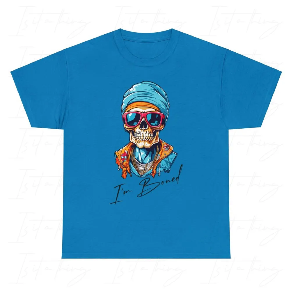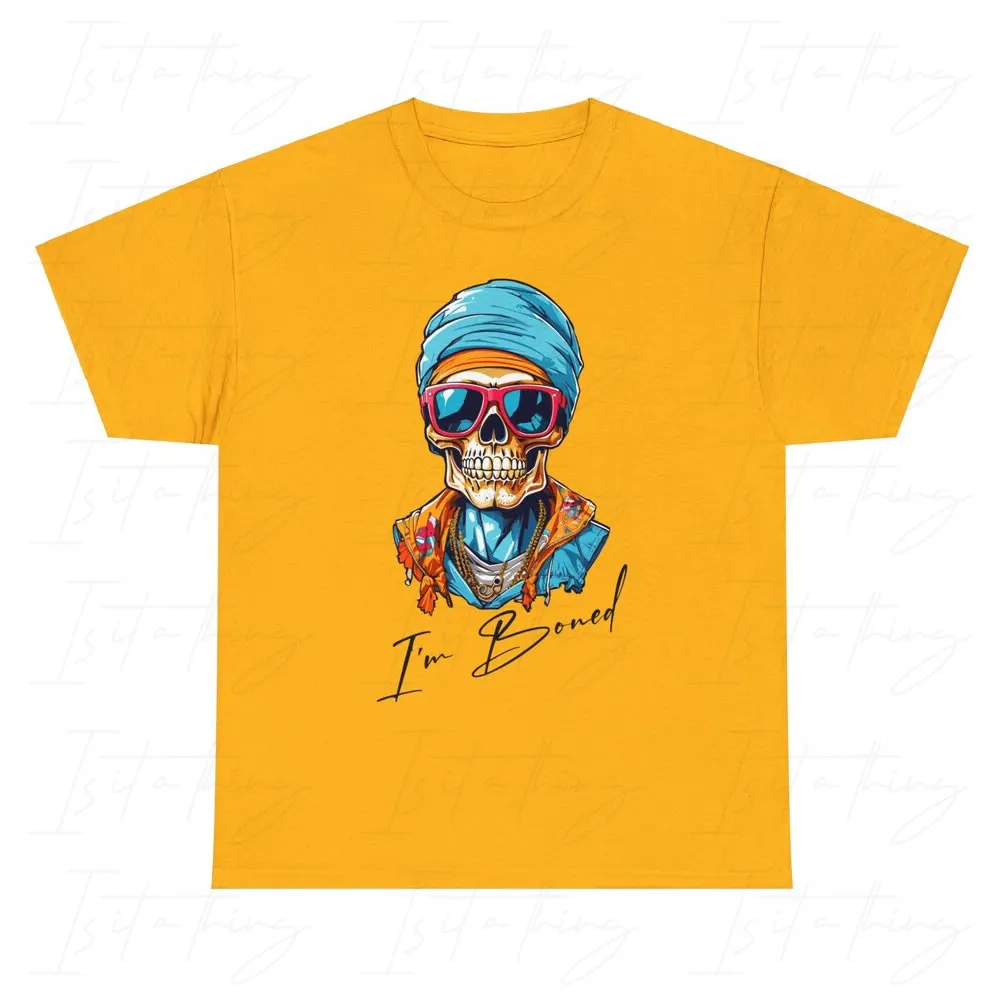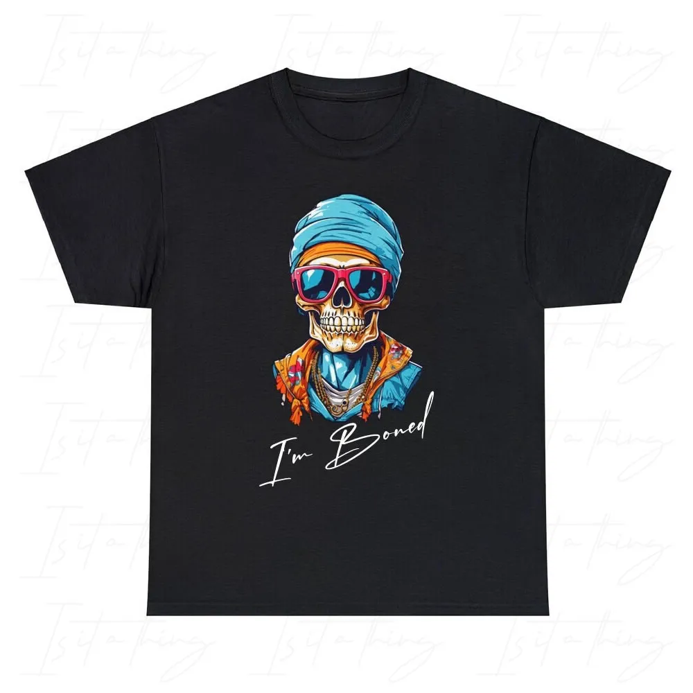 “I’m Boned” emblazoned on this skull-themed t-shirt serves as a darkly humorous and visually striking expression. The skull, often symbolising mortality and danger, complements the phrase, creating an fun yet edgy design that captures the essence of facing challenges with a touch of irreverence. This wearable artwork encapsulates the spirit of those who embrace the inevitable trials of life with a hint of dark humour.